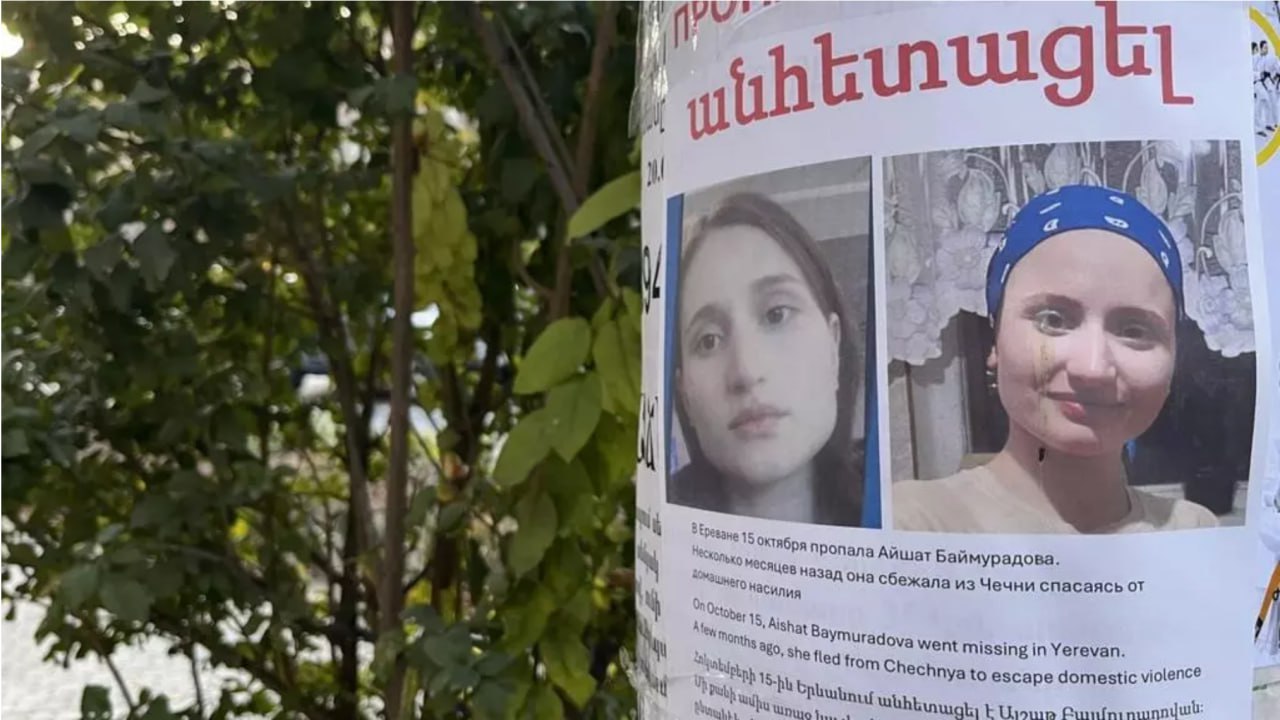 На фото объявление о пропаже Айшат Баймурадовой в Ереване / rfi.fr 🔗